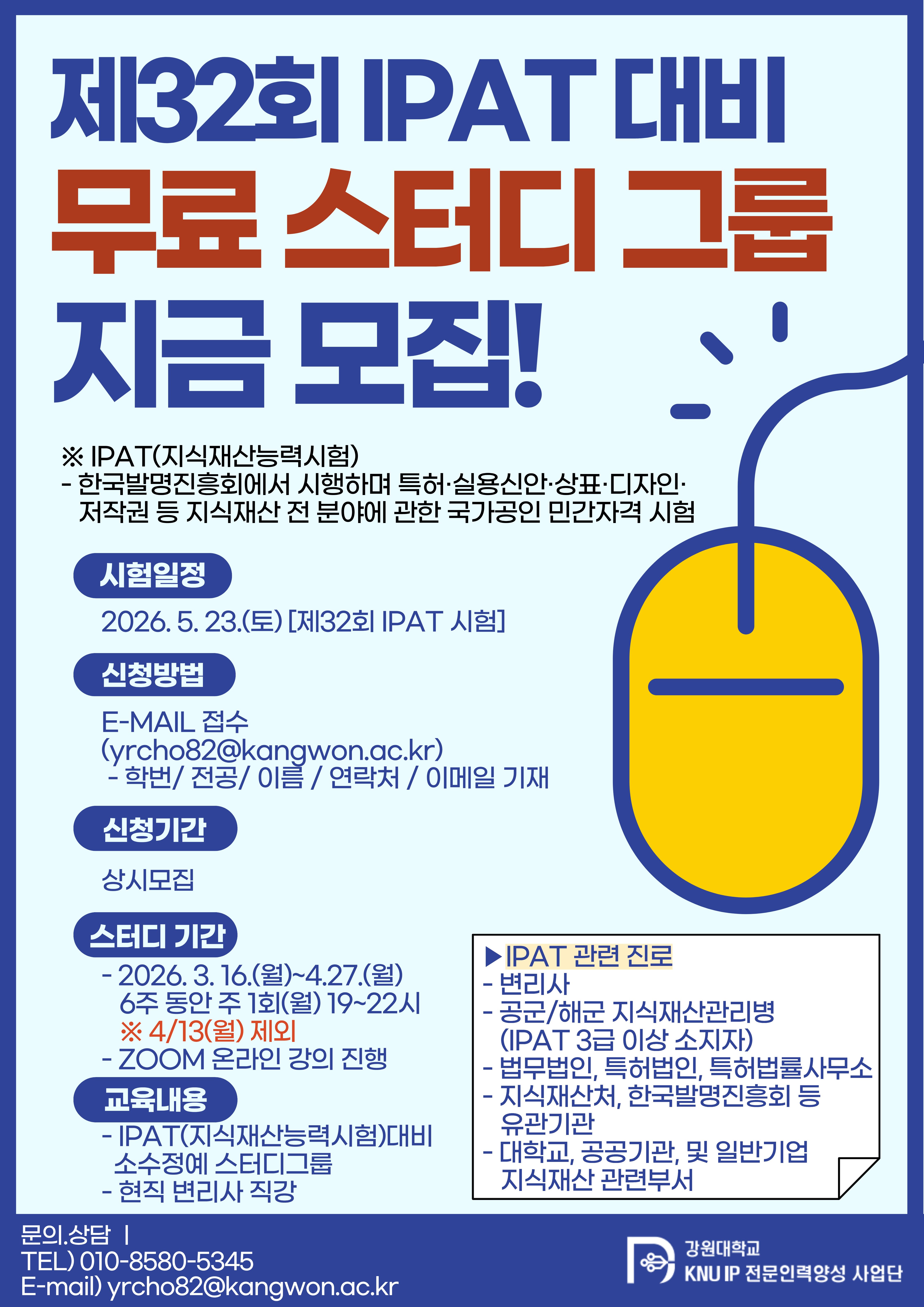 제 32회 지식재산능력시험(IPAT)을 대비하여 IPAT 고득점을 위한 스터디 그룹을 모집합니다.